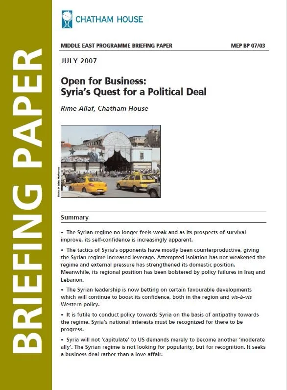 After riding out the diplomatic and political storm of the last two years, Syria is once again a critical player in the future of the Middle East. The Baathist regime has weathered external pressure from the West, the seeds of civil unrest at home and the loss of its historical position of power in Lebanon. Today the future looks far brighter for Syria as it continues to gain leverage on almost every foreign policy front. This is the major finding of a new briefing paper published by Chatham House.